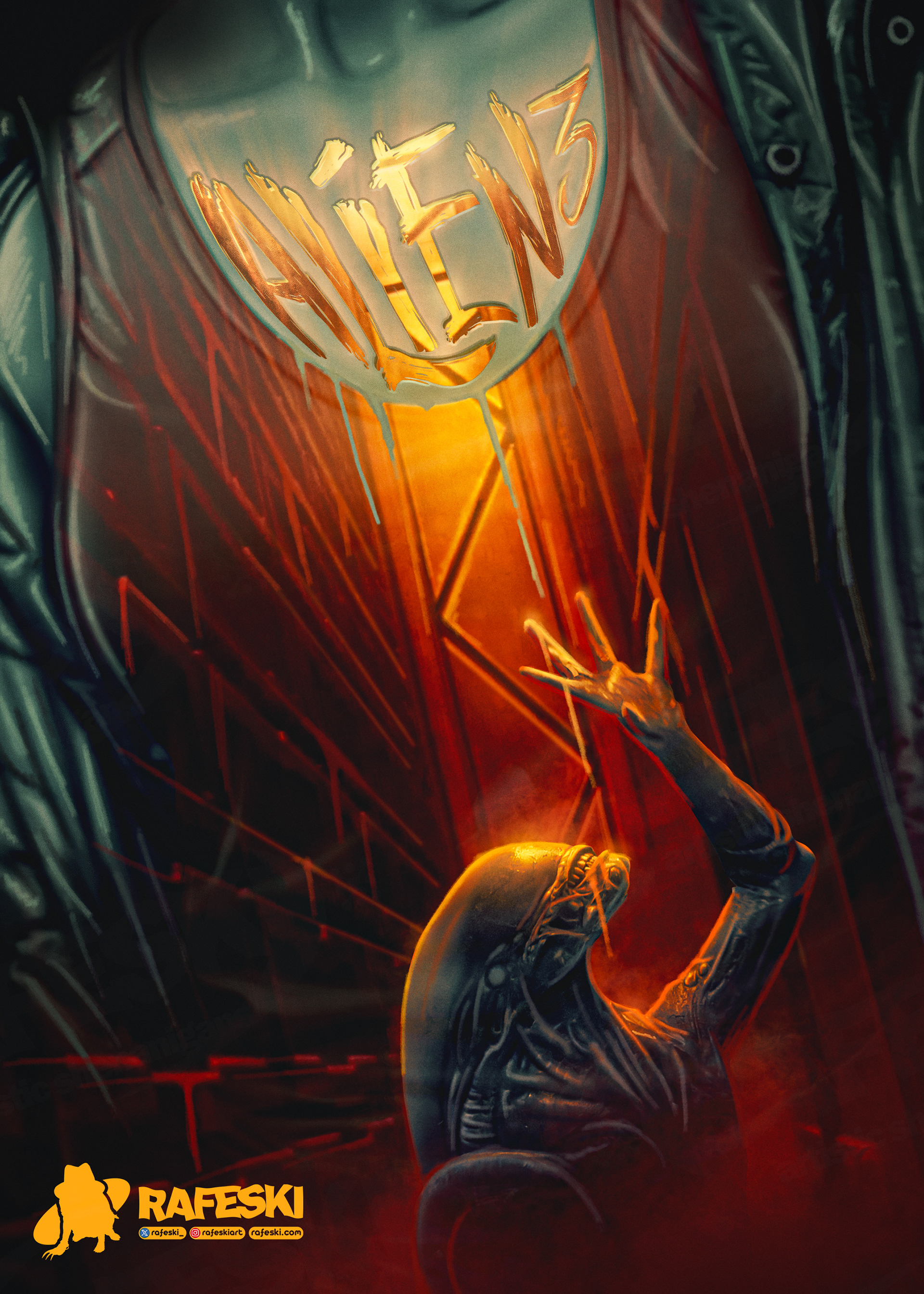 Posters for the ALIEN franchise, including "ALIEN", "Aliens", "Alien³", and "Alien: Romulus"
